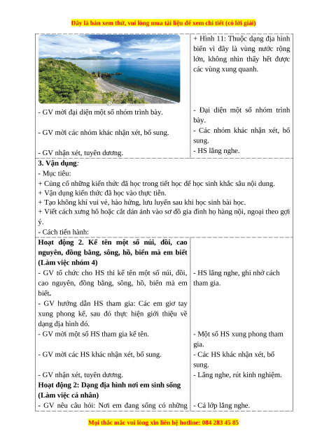 xung phong kể, sau đó thực hiện giới thiệu về dạng địa hình đó.