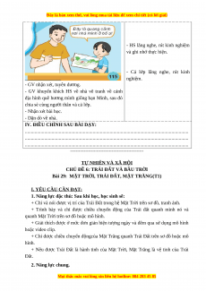 Bài 29: MẶT TRỜI, TRÁI ĐẤT, MẶT TRĂNG(T1)
