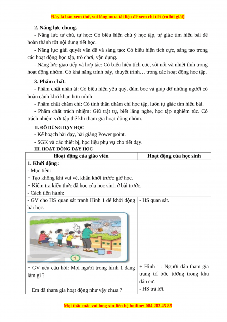 và giữ vệ sinh xung quanh nhà, chia sẻ các việc làm đó với bạn. 2. Năng lực chung.