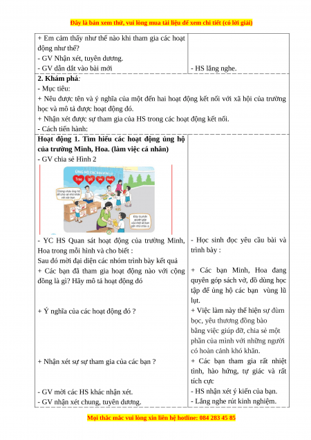 - Nhận xét được sự tham gia của HS trong các hoạt động kết nối.