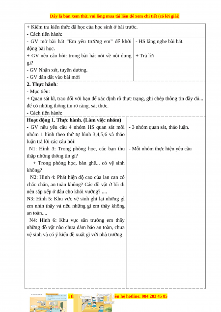 - Được thực hành khảo sát về sự an toàn khuôn viên nhà trường hoặc khu vực