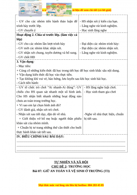 Giáo án Tự nhiên và xã hội 3 Kết nối tri thức Bài 7: Giữ an toàn và vệ sinh ở trường