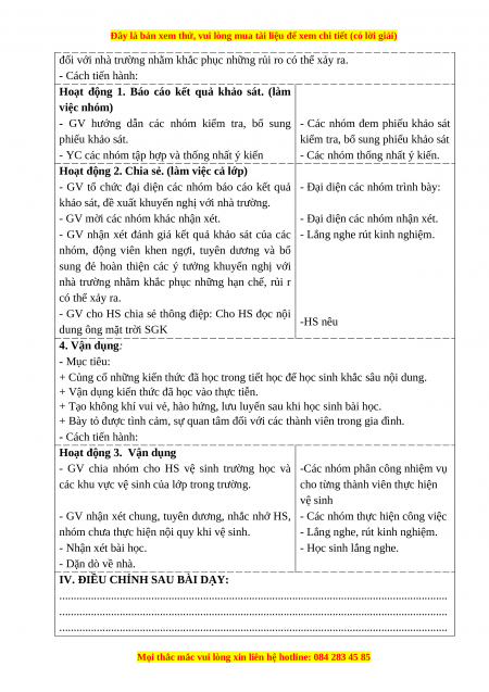 - Có ý thức giữ gìn và làm được một số việc phù hợp để giữ vệ sinh trường học và khu vực xung quanh. 2. Năng lực chung.