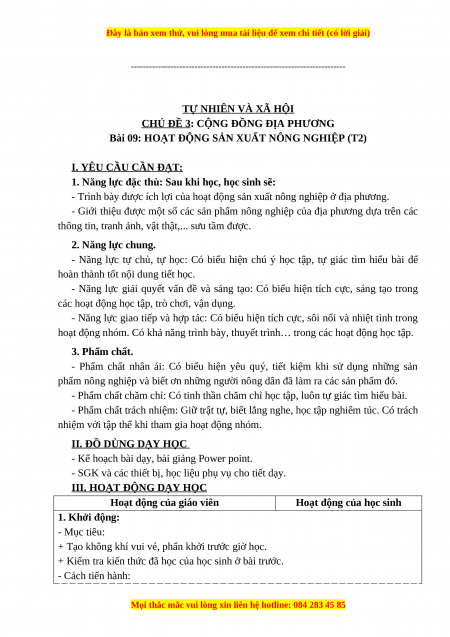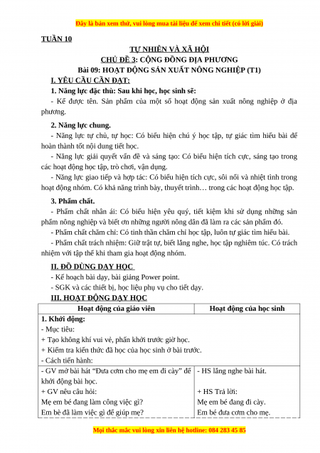 - Kể được tên. Sản phẩm của một số hoạt động sản xuất nông nghiệp ở địa phương. 2. Năng lực chung.