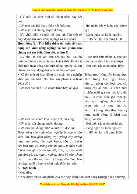 Bài 09: HOẠT ĐỘNG SẢN XUẤT NÔNG NGHIỆP (T2)