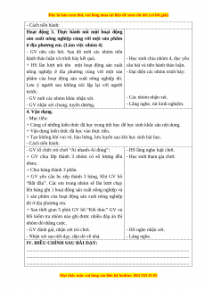 + Kể được tên và sản phẩm của một số hoạt động sản xuất nông nghiệp. - Cách tiến hành: