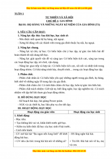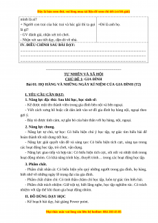 Bài 01: HỌ HÀNG VÀ NHỮNG NGÀY KỈ NIỆM CỦA GIA ĐÌNH (T1) I. YÊU CẦU CẦN ĐẠT: