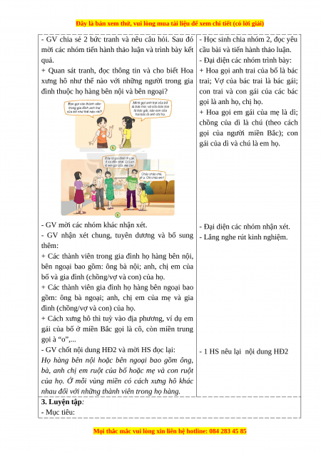 + Xưng hô đúng với các thành viên trong gia đình thuộc họ nội, họ ngoại. - Cách tiến hành: