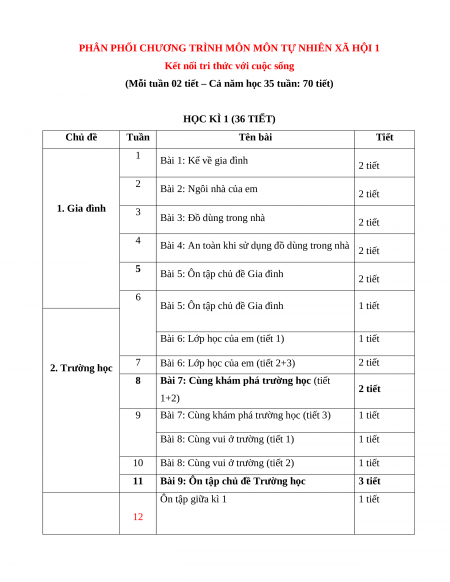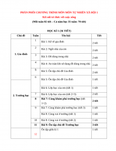 PHÂN PHỐI CHƯƠNG TRÌNH MÔN MÔN TỰ NHIÊN XÃ HỘI 1