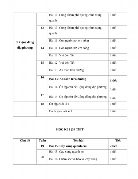 Bài 14: Ôn tập chủ đề Cộng đồng địa phương 2 tiết 18 Ôn tập cuối kì 1 1 tiết Đánh giá cuối kì 1 1 tiết HỌC KÌ 2 (34 TIẾT) Chủ đề Tuần Tên bài Tiết 19