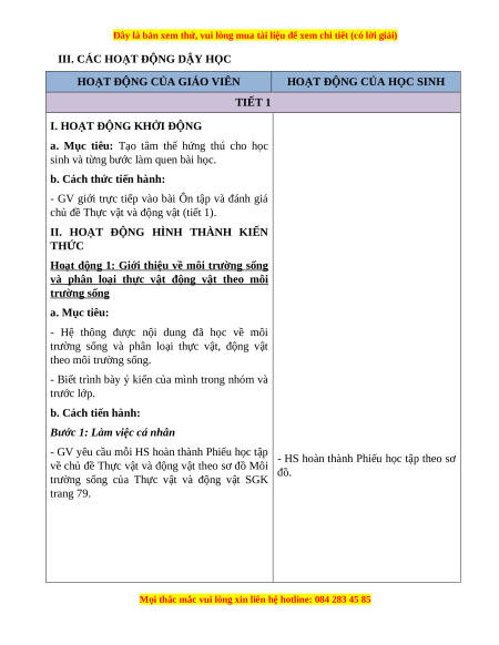 và phân loại thực vật động vật theo môi trường sống a. Mục tiêu: