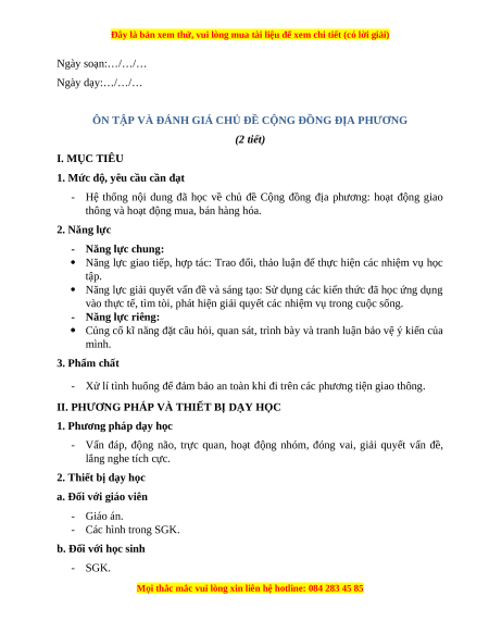 ÔN TẬP VÀ ĐÁNH GIÁ CHỦ ĐỀ CỘNG ĐỒNG ĐỊA PHƯƠNG (2 tiết) I. MỤC TIÊU