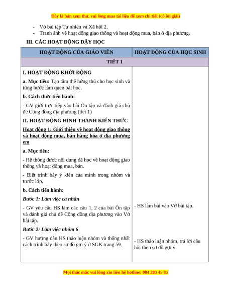 và hoạt động mua, bán hàng hóa ở địa phương em a. Mục tiêu: