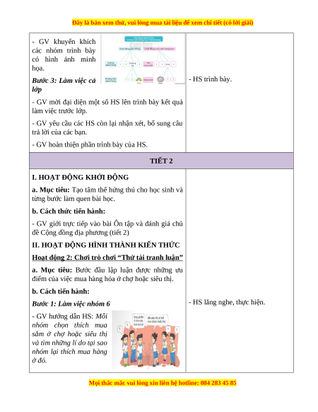 điểm của việc mua hàng hóa ở chợ hoặc siêu thị. b. Cách tiến hành: