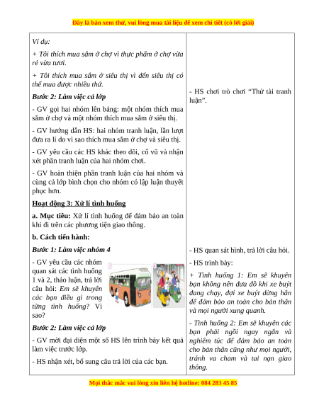 - Xử lí tình huống để đảm bảo an toàn khi đi trên các phương tiện giao thông.