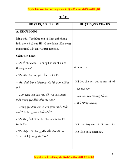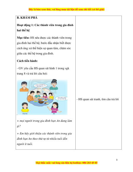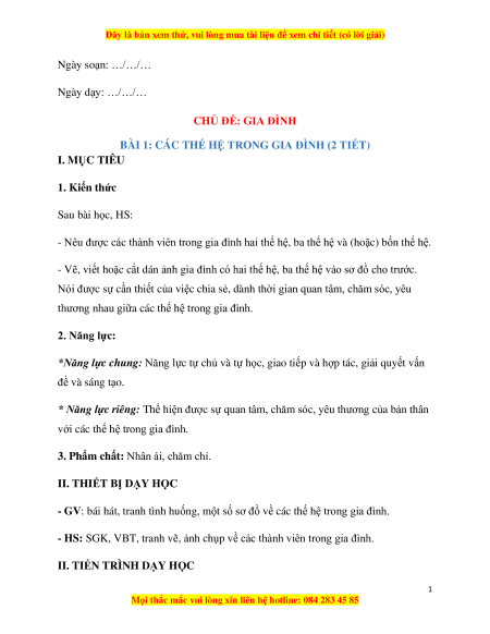 BÀI 1: CÁC THẾ HỆ TRONG GIA ĐÌNH (2 TIẾT) I. MỤC TIÊU 1. Kiến thức Sau bài học, HS: