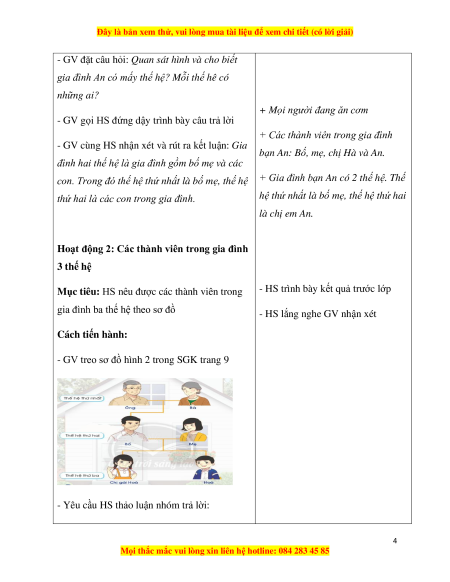 Hoạt động 1: Các thành viên trong gia đình hai thế hệ