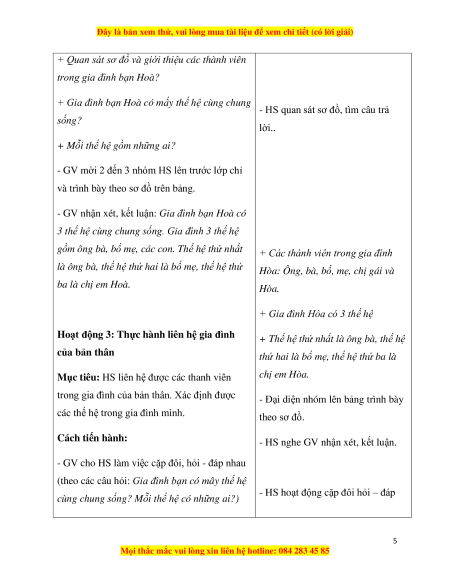 Hoạt động 2: Các thành viên trong gia đình 3 thế hệ
