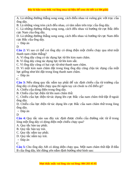 ự Năng l c ự th c ngh ự i m ệ , năng l c ự quan sát, năng l c s ự áng t o, n ạ ăng l c t ự rao đ i ổ . Ph m ẩ chất t t ự in, t l ự p, gi ậ ao ti p. ế Câu 1: Các đư ng ờ s c ứ từ ở trong lòng ng ố dây có dòng đi n ệ m t ộ chi u ề ch y ạ qua có nh ng đ ữ c đi ặ m ể gì? M i ọ thắc m c