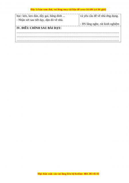 IV. ĐIỀU CHỈNH SAU BÀI DẠY: