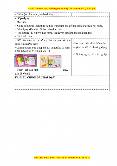 + Học sinh chia sẻ thu hoạch về món quà hoặc bưu thiếp em tặng thầy cô của mình.