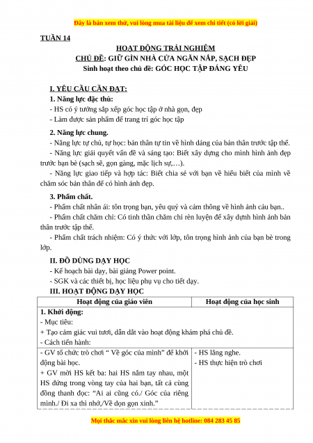Sinh hoạt theo chủ đề: GÓC HỌC TẬP ĐÁNG YÊU I. YÊU CẦU CẦN ĐẠT: 1. Năng lực đặc thù: