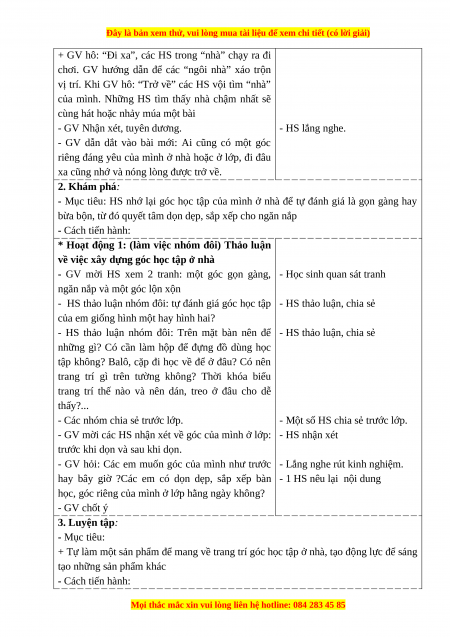 - Học sinh chia sẻ phản hồi về việc chăm sóc góc nhỏ của mình tại gia đình 2. Năng lực chung.
