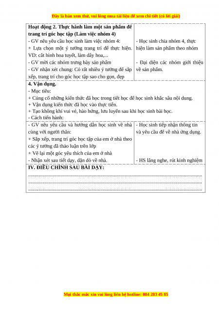 - Làm được sản phẩm để trang trí góc học tập 2. Năng lực chung.