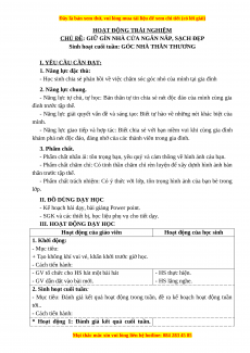 Sinh hoạt cuối tuần: GÓC NHÀ THÂN THƯƠNG I. YÊU CẦU CẦN ĐẠT: 1. Năng lực đặc thù: