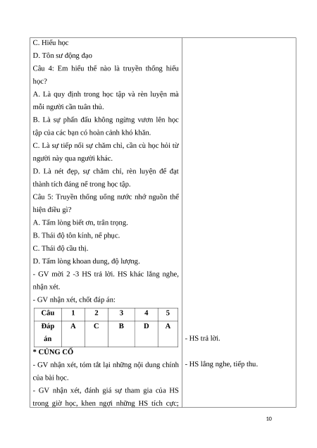 - GV nhận xét, chốt đáp án: - HS trả lời câu hỏi.