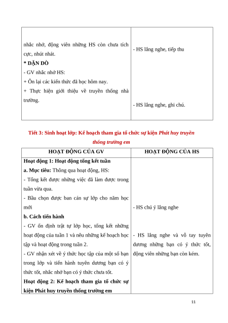 Tiết 2: Hoạt động giáo dục theo chủ đề: Tự hào truyền thống nhà trường HOẠT ĐỘNG CỦA GV HOẠT ĐỘNG CỦA HS
