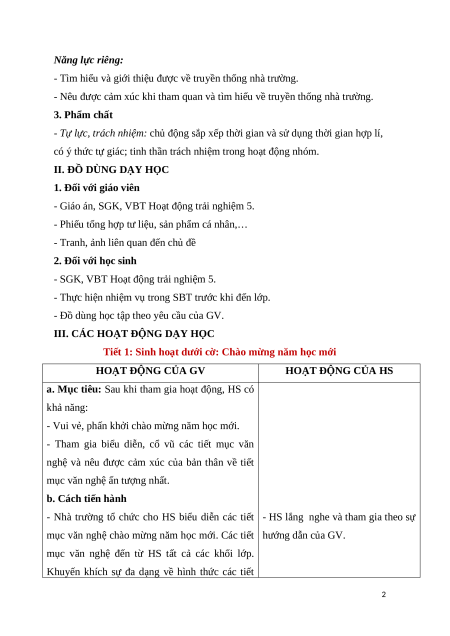 - Nêu được cảm xúc khi tham quan và tìm hiểu về truyền thống nhà trường. 3. Phẩm chất