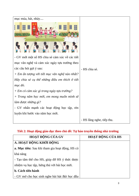 mục văn nghệ chào mừng năm học mới. Các tiết hướng dẫn của GV.