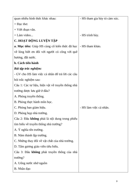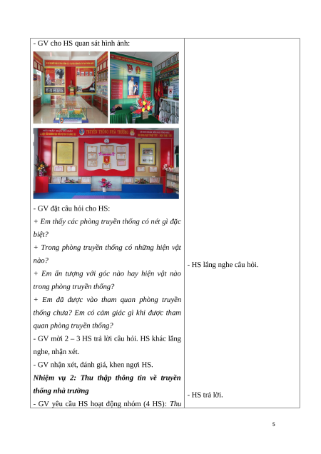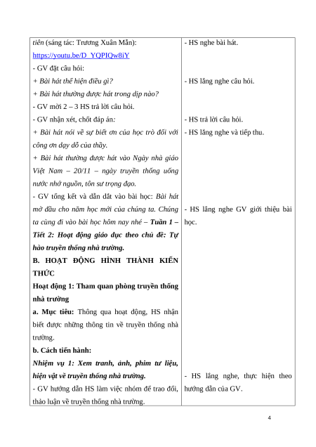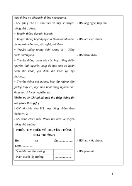 biết được những thông tin về truyền thống nhà trường. b. Cách tiến hành: