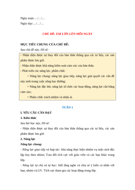 - Nhận diện được sự thay đổi của bản thân thông qua các tư liệu, các sản phẩm được lưu giữ. 2. Năng lực