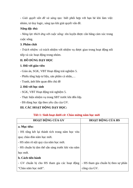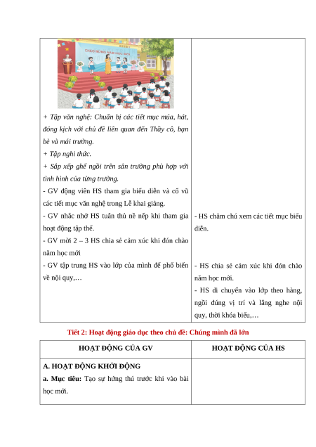 Tiết 1: Sinh hoạt dưới cờ: Chào mừng năm học mới HOẠT ĐỘNG CỦA GV HOẠT ĐỘNG CỦA HS a. Mục tiêu:
