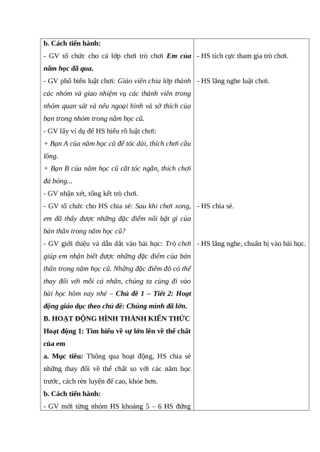- HS chuẩn bị tâm thế sẵn sàng trước khi vào năm học mới. b. Cách tiến hành