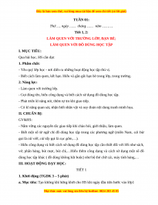 Giáo án Tuần 1 Tiếng việt lớp 1 Kết nối tri thức
