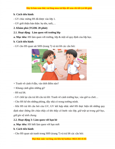a. Mục tiêu: HS làm quen với trường, lớp & một số quy định của lớp học.