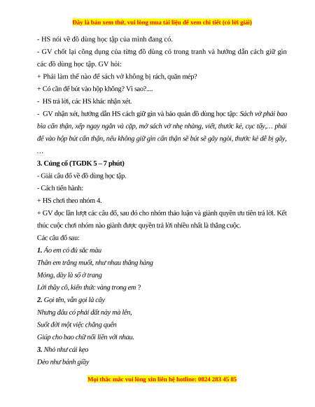 - Gọi đúng tên, hiểu công dụng và biết cách sử dụng đồ dùng học tập.