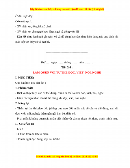 - Biết và thực hiện các tư thế đúng, tránh tư thế sai khi đọc, viết, nói, nghe.