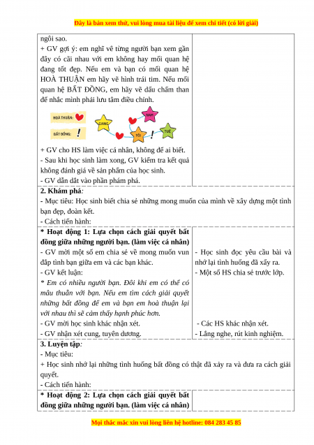 - Học sinh biết cách giải quyết những bất đồng giữa mình và bạn.