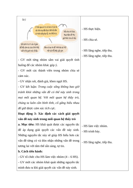 - Giải quyết được một số vấn đề nảy sinh trong quan hệ với thầy cô. 2. Năng lực