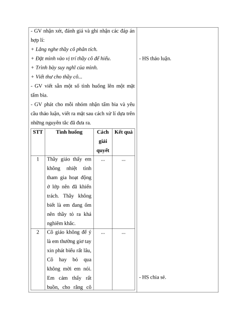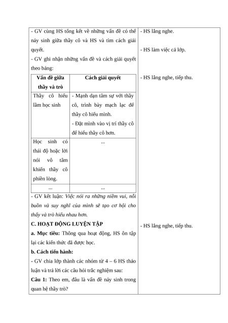 độc lập hay theo nhóm; Trao đổi tích cực với giáo viên và các bạn khác trong lớp.