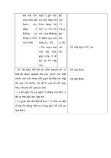 - GV nhắc nhở HS tuân thủ nền nếp khi tham gia hoạt động tập thể. - HS lắng nghe.