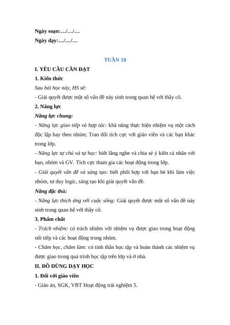 Ngày soạn:…/…/… Ngày dạy:…/…/… TUẦN 10