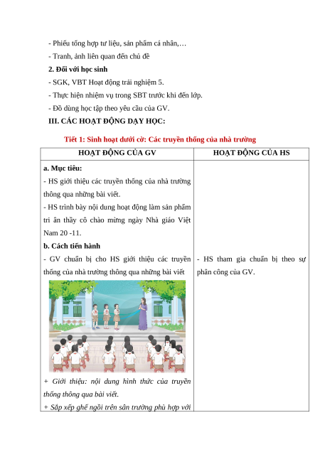 Tiết 1: Sinh hoạt dưới cờ: Các truyền thống của nhà trường HOẠT ĐỘNG CỦA GV HOẠT ĐỘNG CỦA HS a. Mục tiêu: