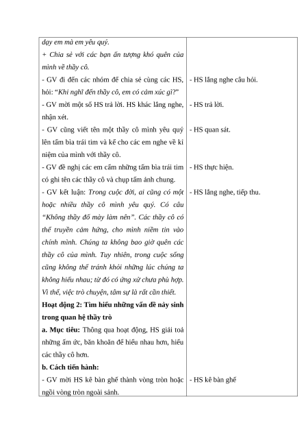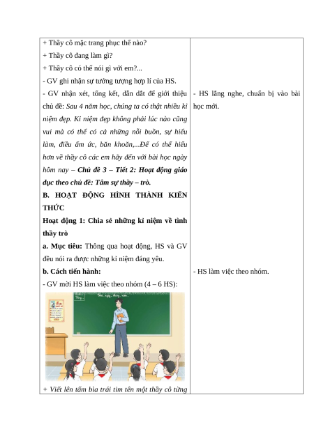 Tiết 2: Hoạt động giáo dục theo chủ đề: Tâm sự thầy - trò HOẠT ĐỘNG CỦA GV HOẠT ĐỘNG CỦA HS