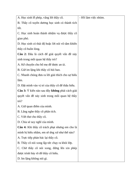 - GV mời HS làm việc theo nhóm (4 – 6 HS):