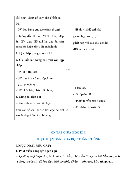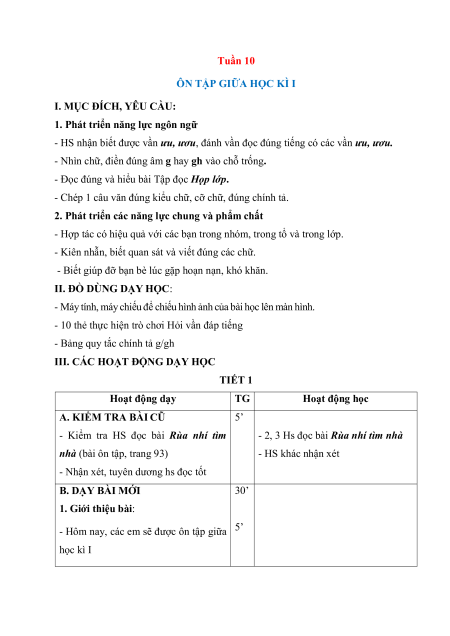 Tuần 10 ÔN TẬP GIỮA HỌC KÌ I I. MỤC ĐÍCH, YÊU CẦU: